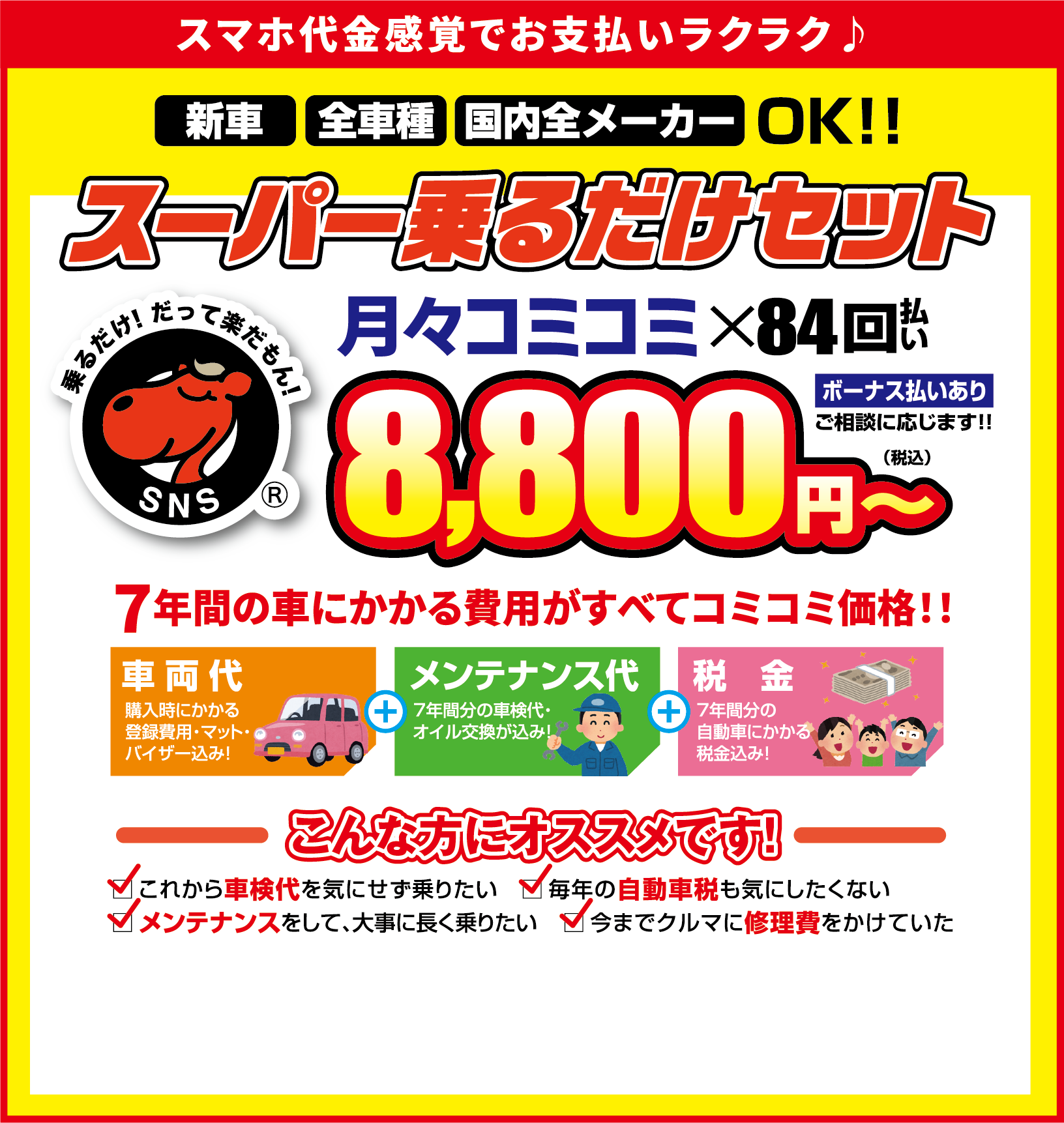 スマホ代金感覚でお支払いラクラク!「スーパー乗るだけセット」のことなら