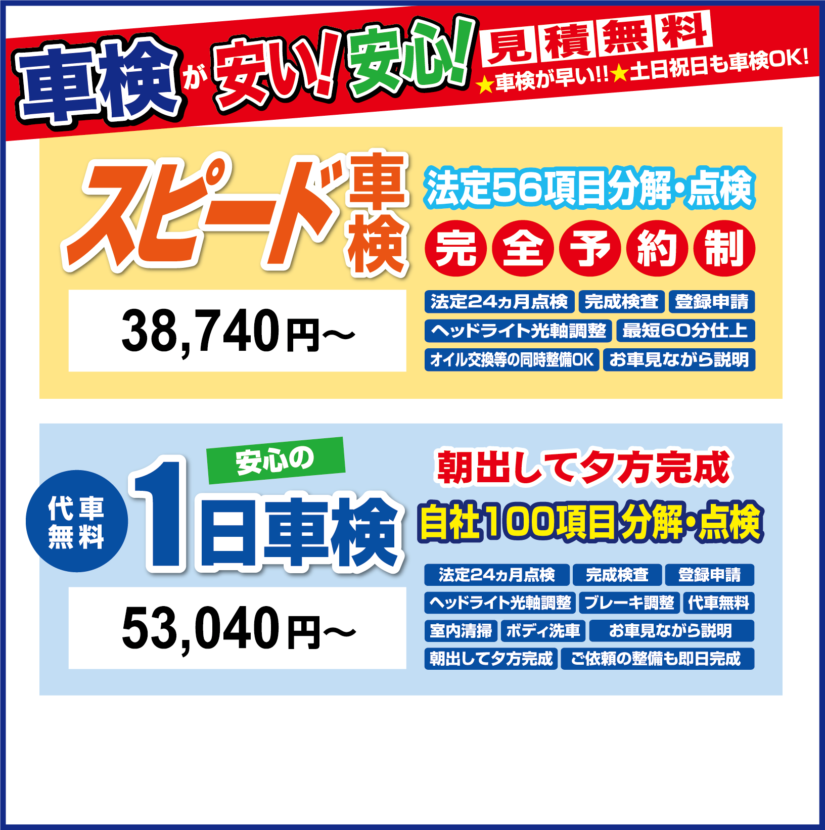 見積無料!「スピード60分車検」・「安心の1日車検」のことなら